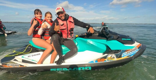 Ce n’est pas une visite classique, mais une expérience incroyable que vous n’oublierez jamais. Montez à bord d’un jetski au départ du port de Gujan Mestras ou d’Arcachon et découvrez toutes les merveilles qui existent sur le Bassin d’Arcachon. A votre retour à la base nautique, vous vous affronterez lors d’un quizz constitué de Buzzer afin de tester vos connaissances et ainsi tenter de gagner le trésor ! Il s’agit de randonnée jetski encadrée par un moniteur professionnel diplômé de la jeunesse et du sport mention motonautisme vous permettant ainsi de piloter votre jetski sans permis bateau. Nos randonnées jetski sur le Bassin d’Arcachon comprennent non seulement une balade en jetski vous permettant de découvrir l’île aux oiseaux, les cabanes tchanquées, la dune du pilat, mais aussi de nombreuses activités . Nous vous fournissons tout ce dont vous avez besoin !